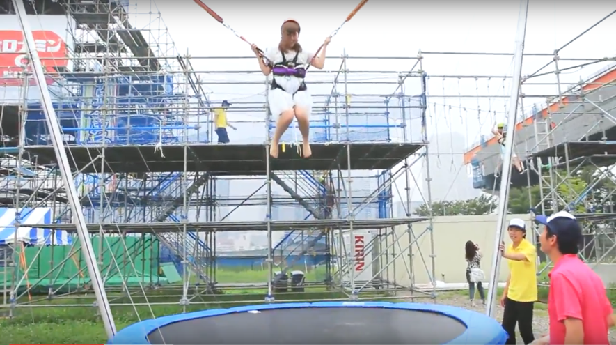 巨大なトランポリンを駆使して、普段のジャンプでは飛べないくらいの高さまで飛ぶことができるアトラクション。なんと最大で7mまで飛ぶことができるそうです!ということで、私も挑戦してみました! 自分ではとても高く飛んでるつもりですごく楽しかったのですが、見ている方からするとそうでもなかったみたいです。タイミングを合わせると高く飛べるそうなので、挑戦する方はぜひそこを意識してハイパージャンプしてみてください!高さだけでは物足りないという方は、空中パフォーマンスに挑戦してみるのもいいかもしれませんね!!